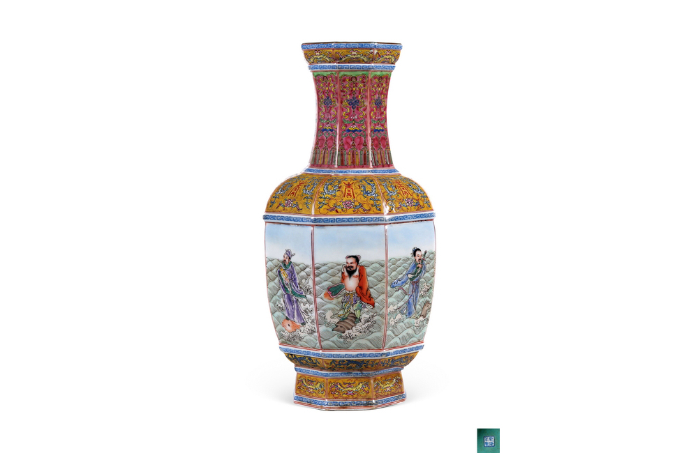 famille rose 'eight immortals crossing the sea' dish-mouthed vaseqianlong period of qing dynastymark: qianlong four-character sealmark