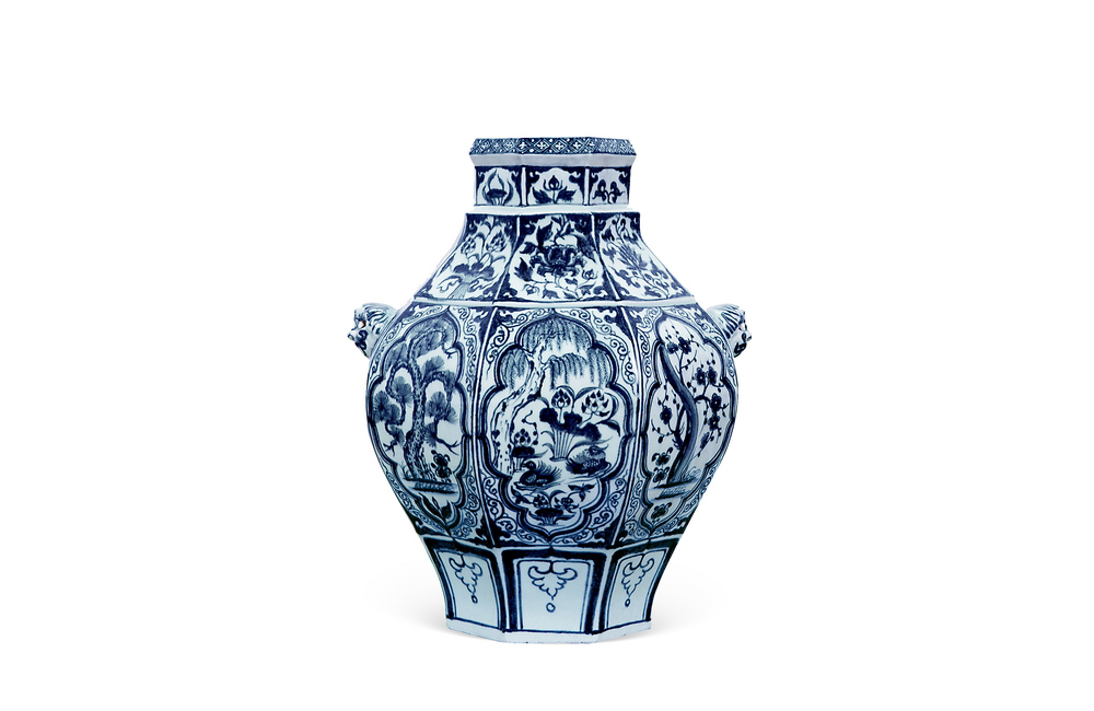 blue and white 'mandarin duck and lotus' double-handled jaryuan dynasty