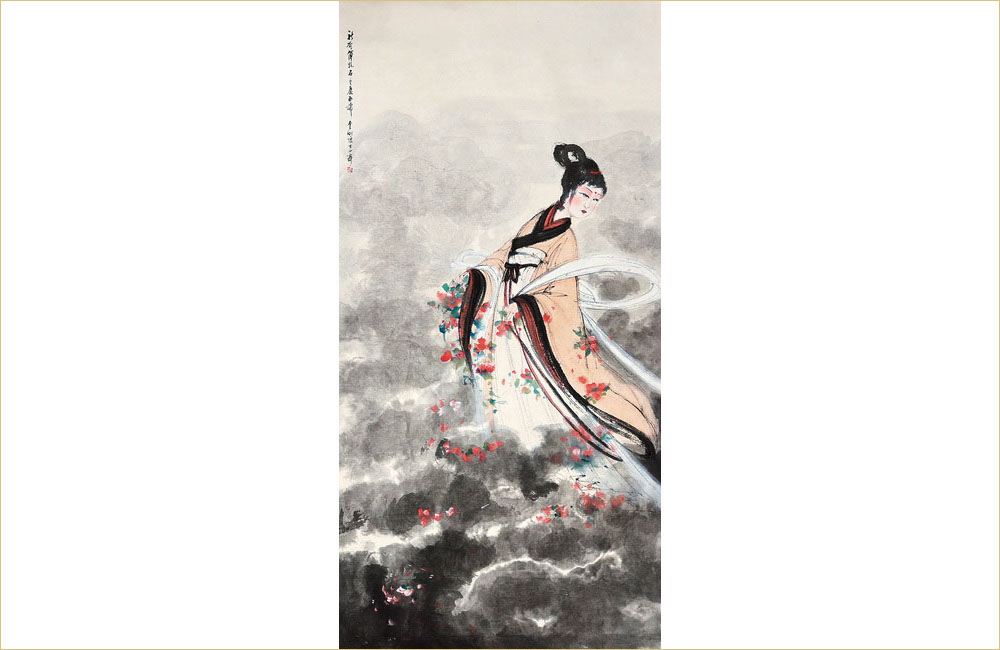 goddess scattering flowers